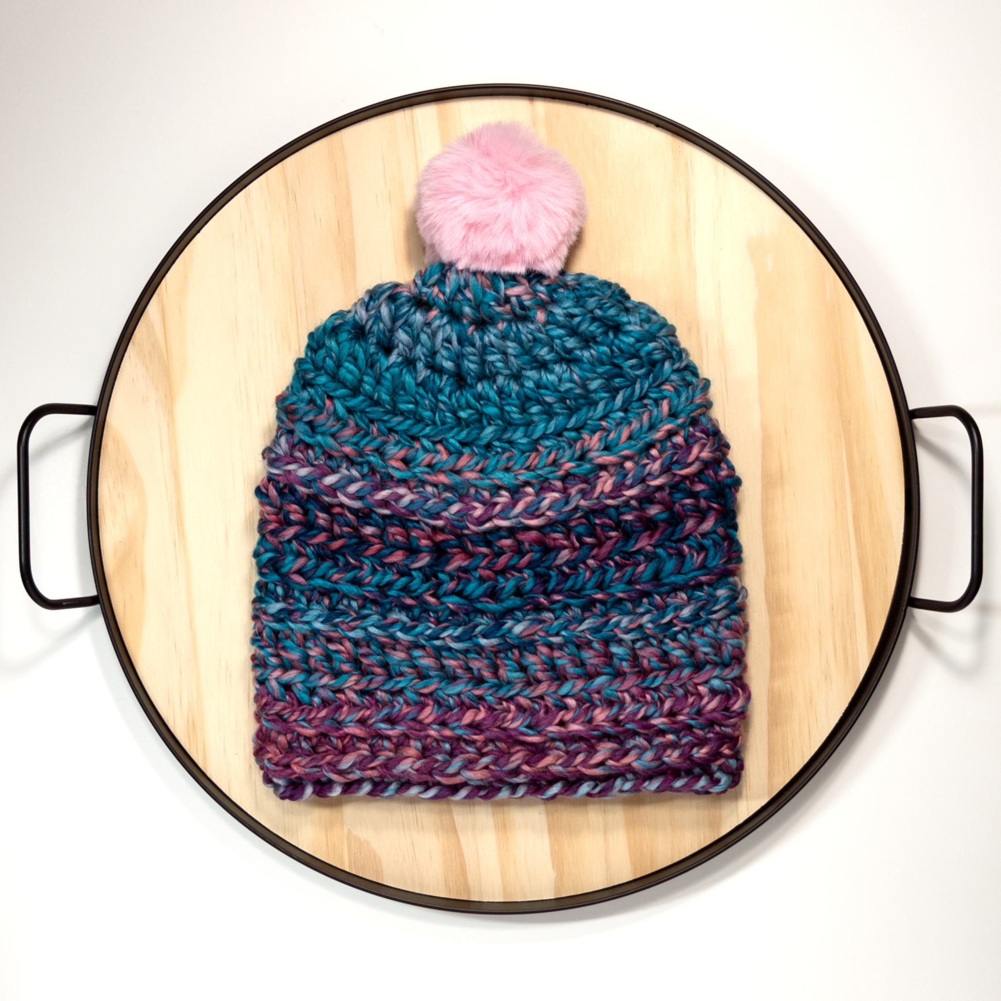 Upgrade your winter wardrobe with our hand crochet hat, perfect for both teens and adults. Stay cozy and stylish with a removable pompom for a customizable look. Expertly crafted for ultimate comfort and warmth.